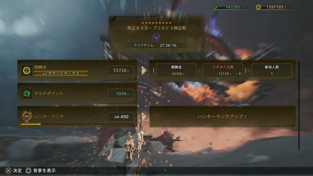 27分前半で討伐できました。1回目が34分だったので、マイナス7分です。