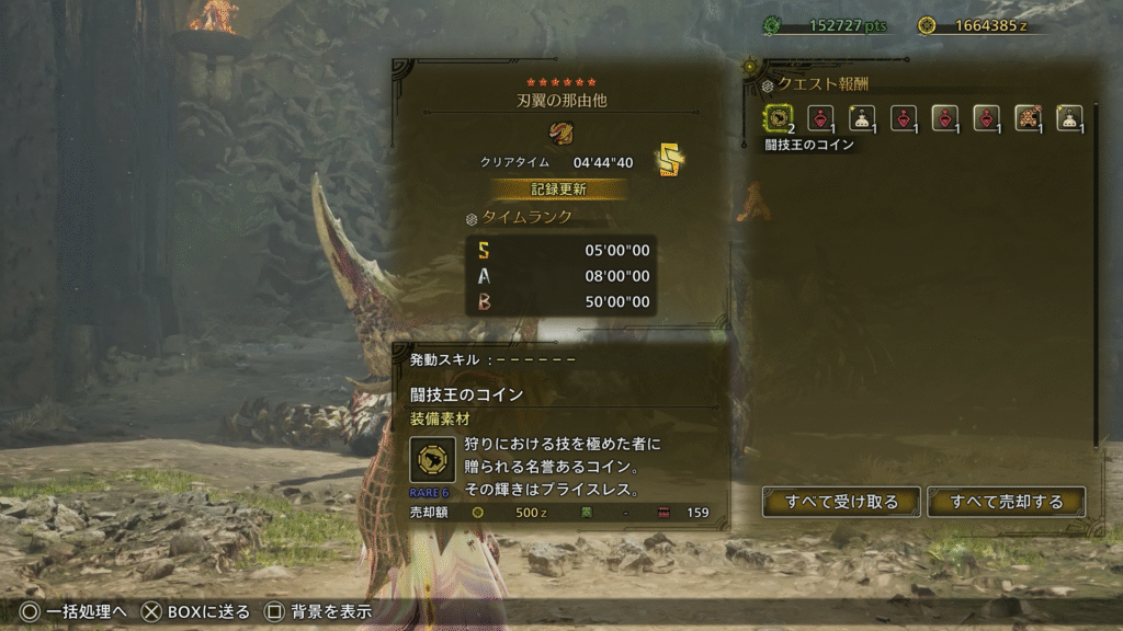 Sランク基準タイムは5分。私のタイムは4分44秒でしたので、結構ギリギリでした。