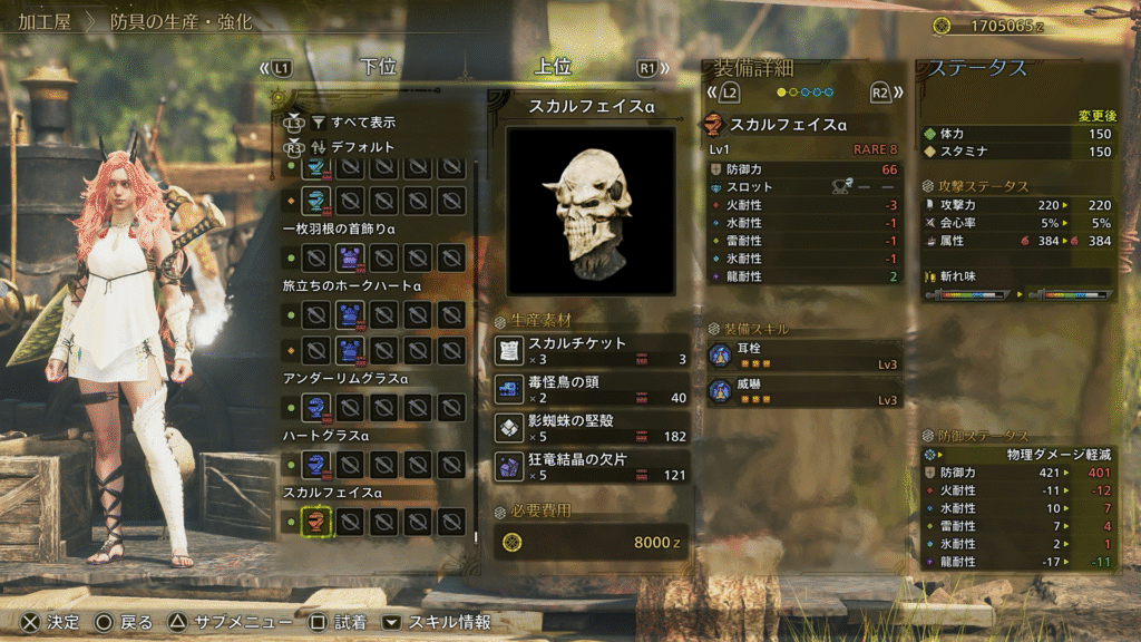 クリアすることでスカルフェイスαの生産素材を入手することができます。