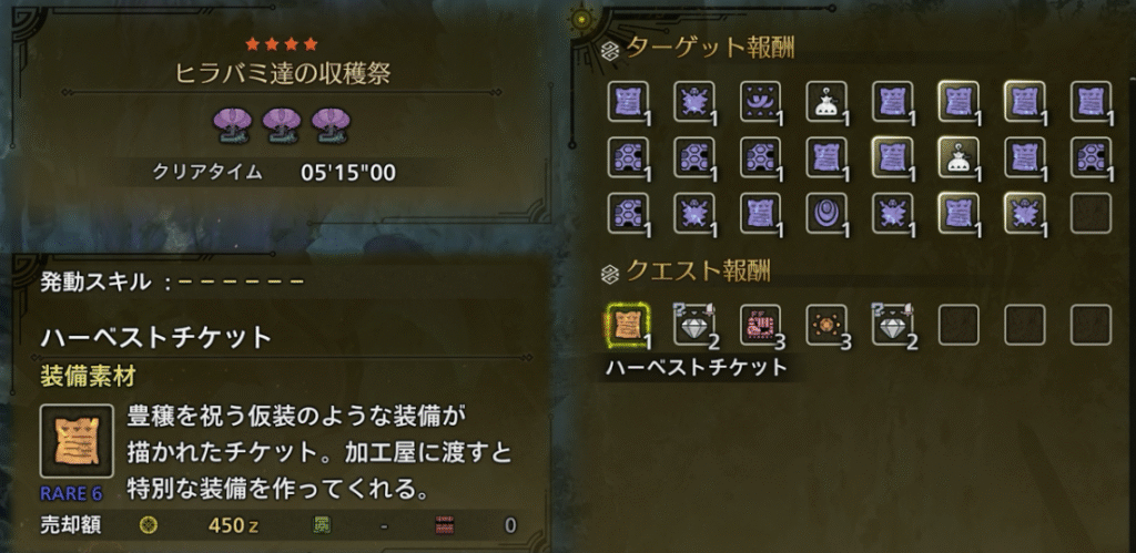 クリアすることでハーベストαシリーズの生産素材を入手することができます。
