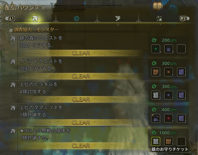 「銀のお守りチケット」がもらえる配信バウンティのクリア