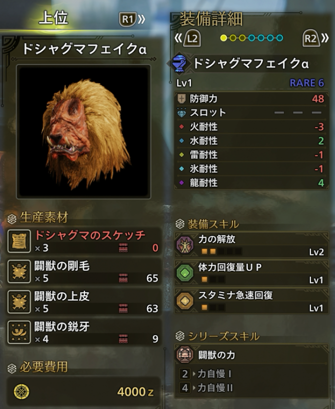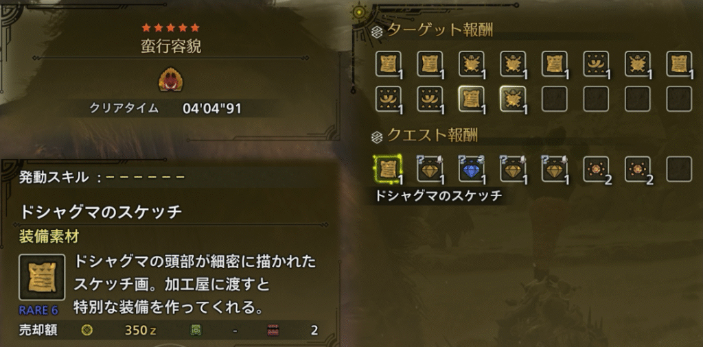 | 報酬 | ドシャグマフェイクαの生産素材 |
