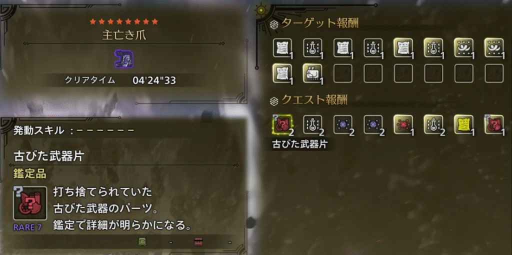 | 報酬 | 古びた武器片 |