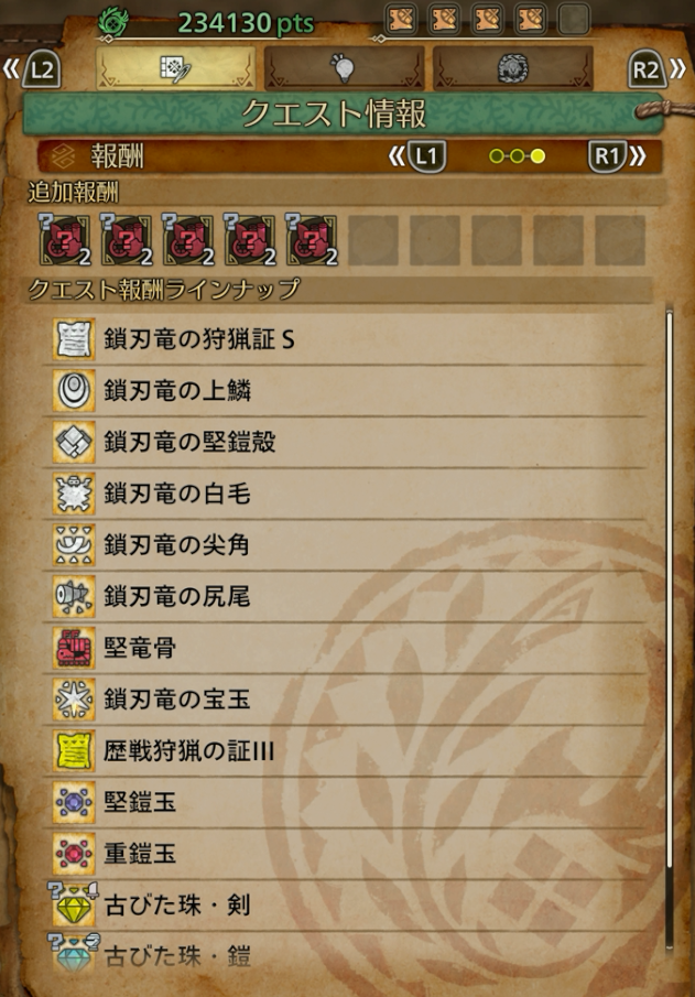 事前にクエスト報酬ラインナップで確認しておきましょう。